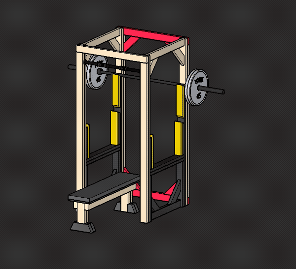 I knew the bench would not only have to support a large weight plus my body weight, but also remain stable under load. I went through a few iterations before I settled on the final over-engineered design.